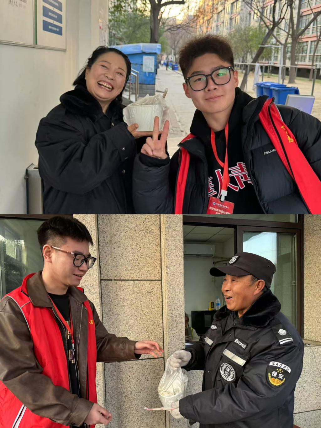 活动最后,数创志愿者们还为冬日里在不同岗位上辛勤工作的宿管阿姨、门卫大叔送上爱心饺子,感谢他们在平凡的岗位上默默坚守。一碗热气腾腾的水饺,使他们脸上洋溢着笑容,为他们驱走了冬日的寒意。