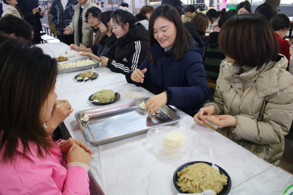 当日下午,西西里餐厅内一片热闹景象。师生们纷纷挽起袖子,化身“厨房高手”。同学们发挥奇思妙想包出形态各异的饺子,从传统月牙饺到创意十足的“花式饺”。老师们也一展身手,在忙碌中分享着自己的生活趣事,传授家乡包饺子的独特窍门,拉近了与同学们的距离。在等待饺子出锅的间隙,徐海燕还给同学们讲述了冬至的历史渊源与文化内涵,强调传承传统文化的重要性,使这场活动更添文化底蕴。