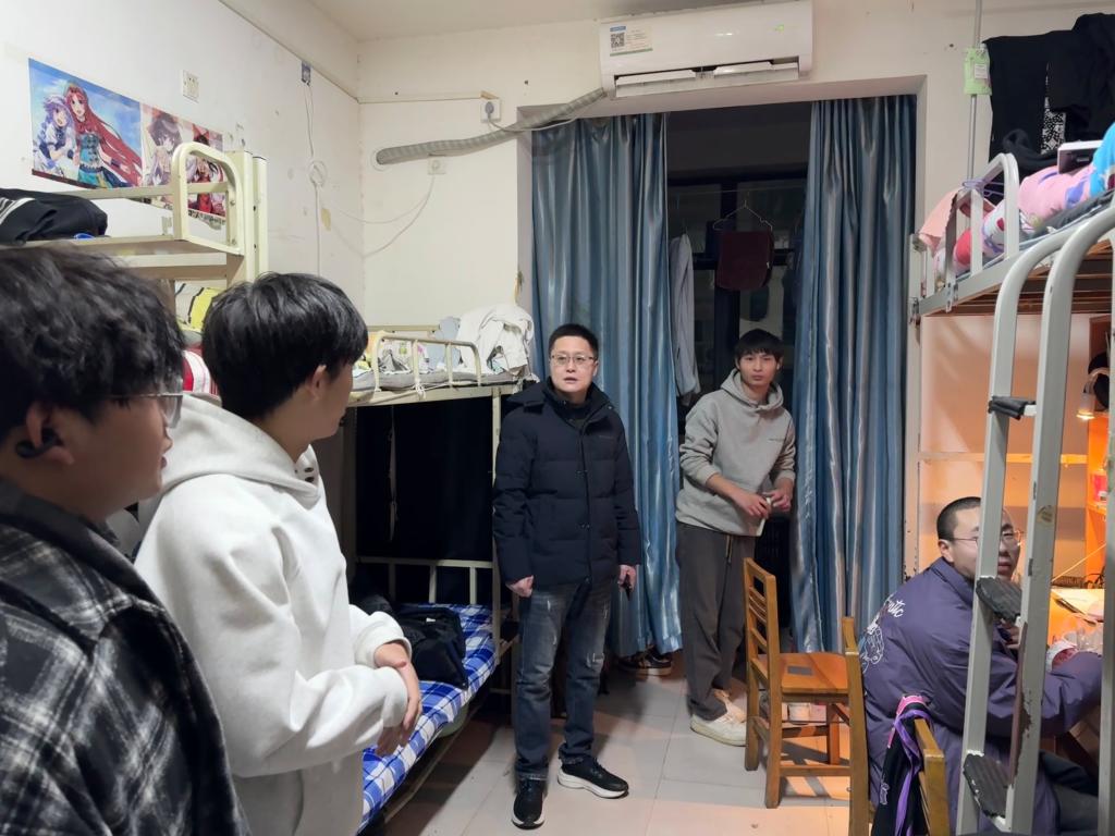 为深入了解员工生活状况和思想动态,加强师生沟通交流,切实筑牢员工管理安全防线。2025年1月1日晚,公司党总支副书记田景娜带领辅导员老师深入员工宿舍,开展走访慰问,送上新年祝福。