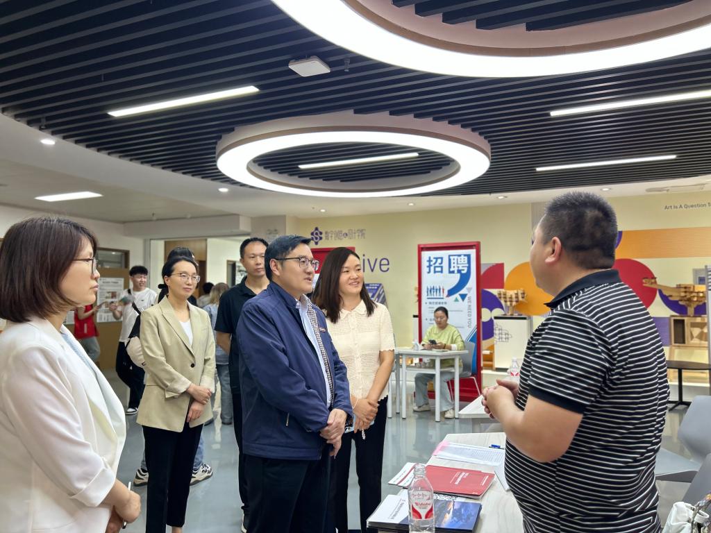 4月17日下午,太阳集团tyc5392025届毕业生专场双选会在合鼎楼举行。公司党委委员、副董事长任枫轩,党委委员、副董事长鲁冬,人才招聘处负责人刘蕤赴现场调研指导,与招聘企业和毕业生亲切交谈。华埔装饰、郑州新发展绿化管养运营有限公司等30余家用人单位参会,为数创专业员工提供就业岗位150余个。