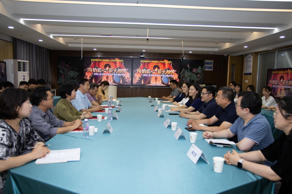河南省陶瓷玻璃行业管理协会会长杨德林、副会长暴风云,河南省工艺美术大师刘瑞海,禹州非遗钧瓷烧制技艺传承人李尚,分别围绕陶瓷艺术行业人才需求特点、产品艺术设计赛项竞赛模式及评分要点、非遗技艺传承中的工匠精神培育、本科层次校企协同育人模式等方面展开论述。师生们与专家进行了深度交流研讨。