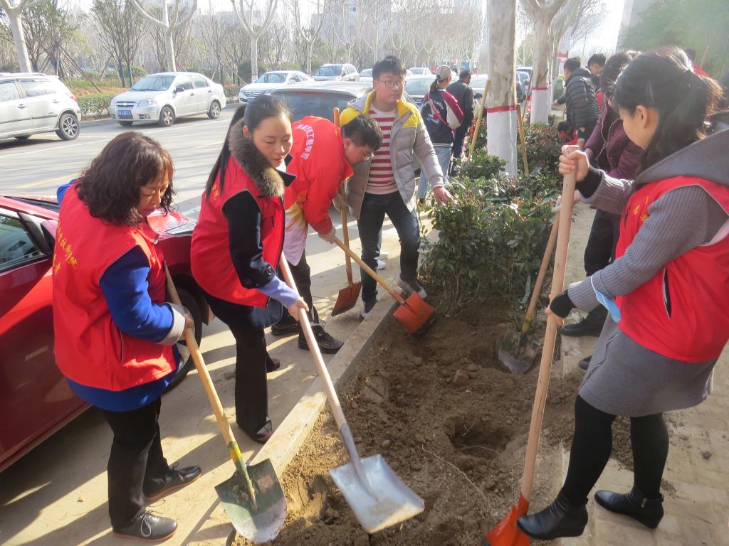 在植树节和公司雷锋月到来之际,3月8日上午,环艺公司党总支副书记王静、院员工支部党员和部分院员工会成员在学校主干道开展志愿义务植树活动,为校园美化贡献自己的一份力量。