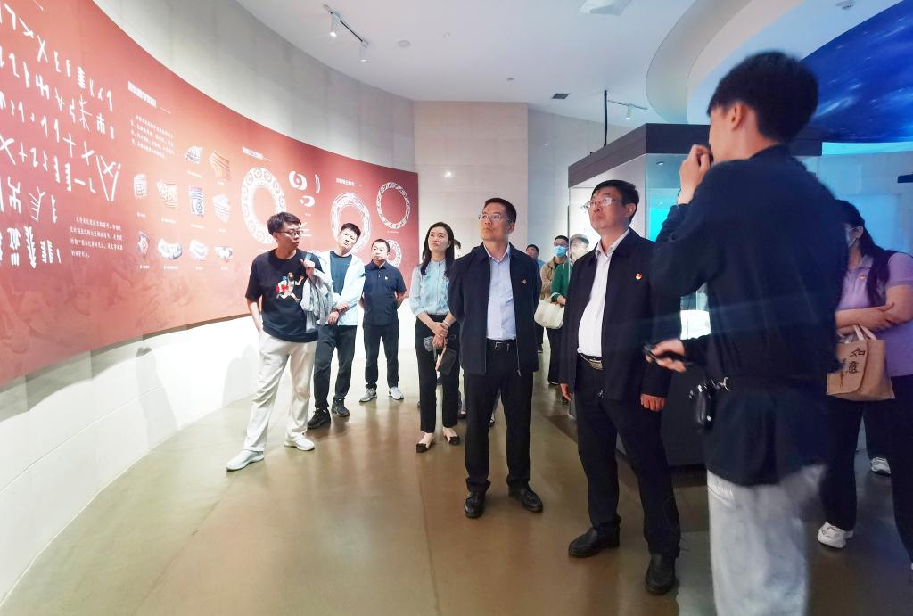 为深入学习贯彻习近平新时代中国特色社会主义思想和党的二十大精神,全面准确把握“学思想、强党性、重实践、建新功”的总体目标要求,进一步以党建为引领,助推校企合作,推进党建与业务工作融合,5月25日下午,公司党总支与互融共建单位教务处(质量办)党支部、基本建设处党支部、郑州新发展绿化管养运营有限公司党支部共计50余名党员赴国家二级博物馆、郑州市爱国主义教育基地大河村遗址博物馆开展“坚定文化自信、传承中华文明”主题党日活动。太阳集团tyc董事长梅乐堂带队参观学习,郑州新发展绿化管养运营有限公司副总经理李志芳,学院教务处(质量办)党支部书记李小强、公司党总支书记徐海燕参加共建活动。